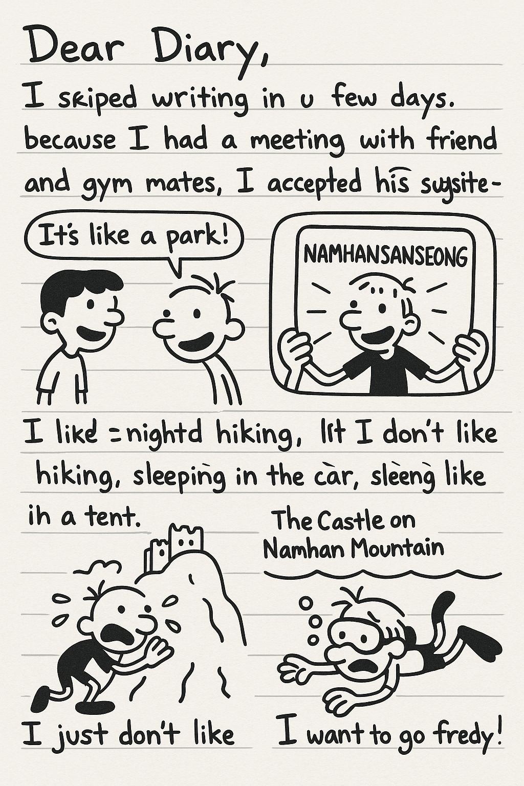 - diary에 직접 "skipped you"라고 하기는 어색 → skipped writing in you